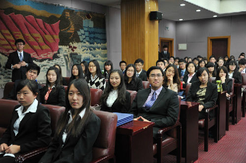 校团委讯(通讯员 李思瑞 沈可 摄影 黄宇声 陈宇桐 编辑 沈可)2013年11月7日,我校2013-2014学年学生干部大会在诚信三层国际会议厅召开。校团委书记陶好飞、副书记刘琳、国际关系学院分党委书记徐松、信息学院分党委副书记张志娟、英语学院分党委副书记徐文兵、国际商学院分党委副书记孟大惟、法学院分党委副书记阎丽鸿、公共管理学院分党委副书记雷亮、保险学院分党委副书记申爱华,各学院分团委书记和校团委负责老师出席本次会议,我校第15届研究生支教团全体成员、校团委直属部门、各校级组织主席团、各学院分团委副书记、主席团、志愿团团长、留学生会主席团及相关部门的学生干部170余人参加此次会议。